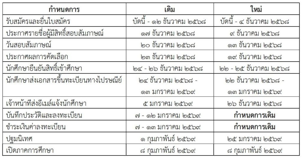 กาศเปลี่ยนแปลงกำหนดการรับสมัคร